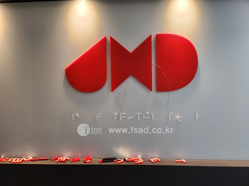 의뢰하셔서 아크릴 입체문자를 활용해 회사로고를