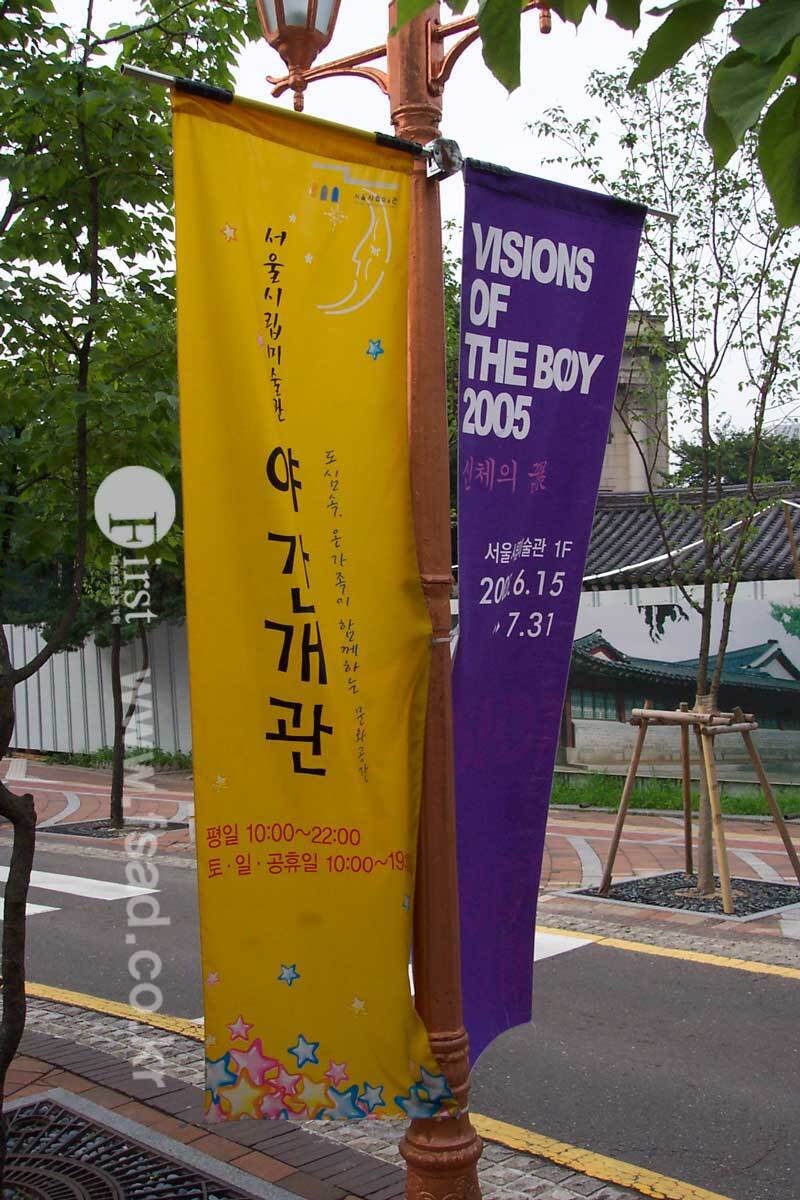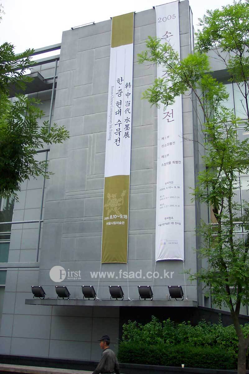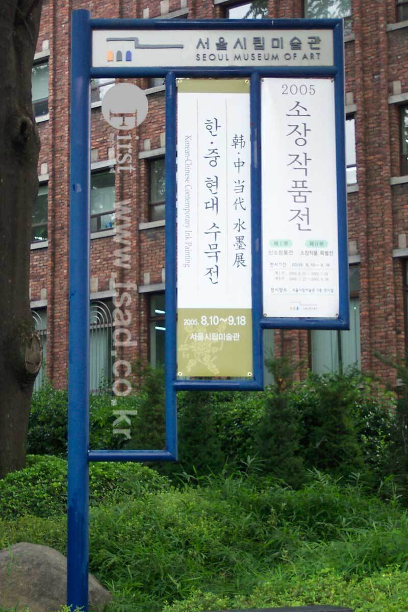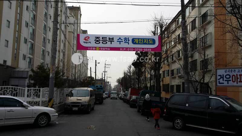 이처럼 기둥과 기둥 사이에 높게 현수막을 게시하여