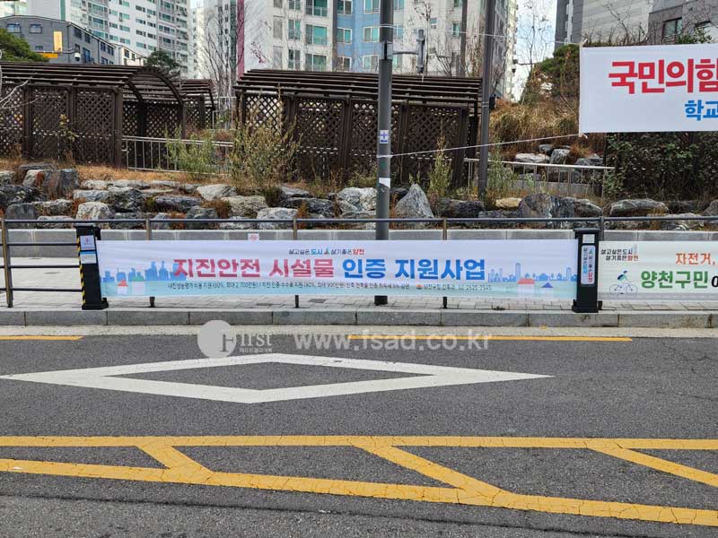 최근 양천구청 건축과의 요청을 받아 제작 게시한 현수막의 모습입니다^^
