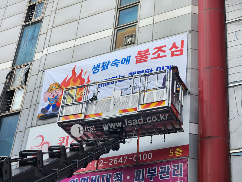 불조심에 대한 홍보문구로 이루어진 대형로프현수막을