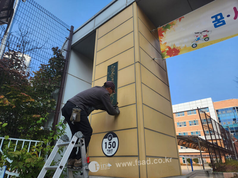 자! 그럼 삼송초등학교 주물현판 및 게시판실사 교체 시공에 대한