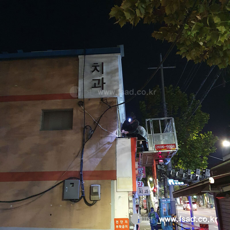 항상 그래왔듯이 기존 간판 철거 후 신규 간판시공을 위해