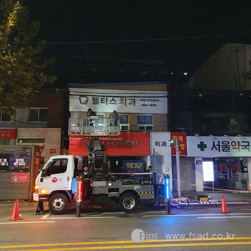 이번 시공의 경우 2층에 위치한 전면 및 측면간판을