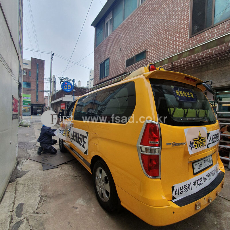 밋밋했던 노란 스타렉스에 다양한 디자인실사들로 꾸며져