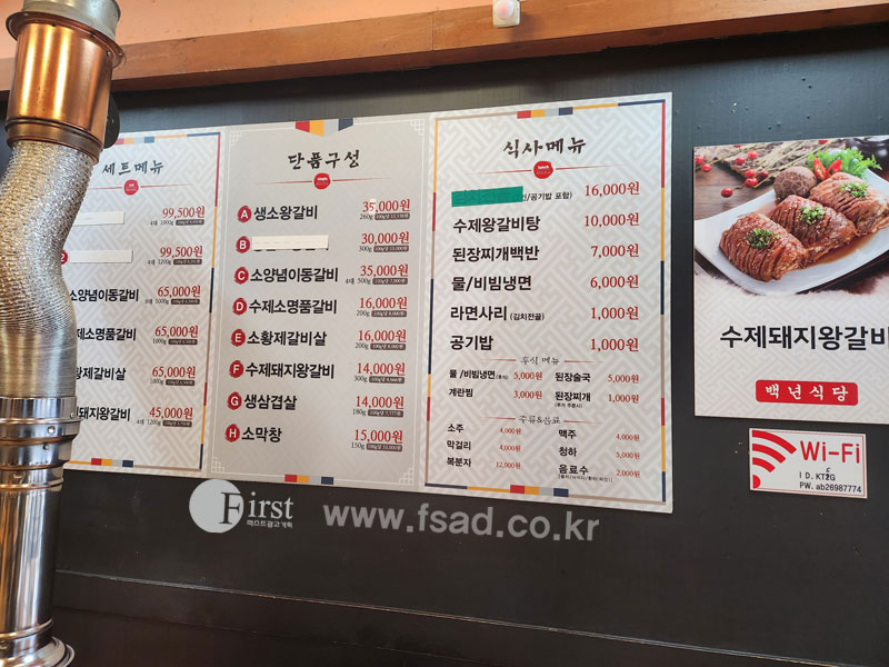 실내 메뉴판 또한 재정비하여 실사부착시공을 해드리기로 했답니다