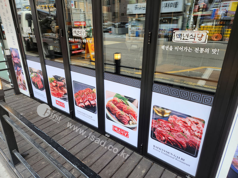 이상으로 백년식당 신월직영점 유리창선팅 및 실내사인