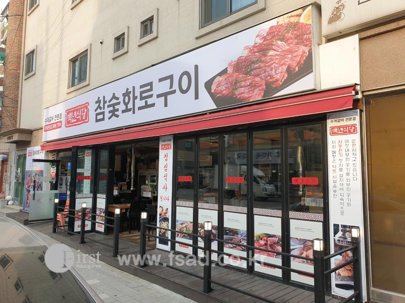 유리창 및 실내사인 시공을 위해 다시 찾은 백년식당 신월직영점으로