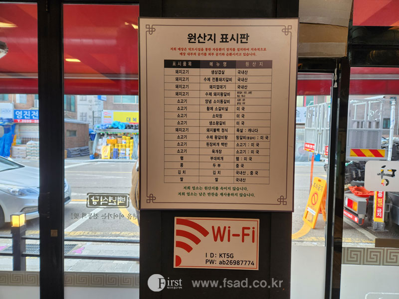그 외 메뉴판 및 원산지 표시판 등 재정비한 실사를 붙여주어