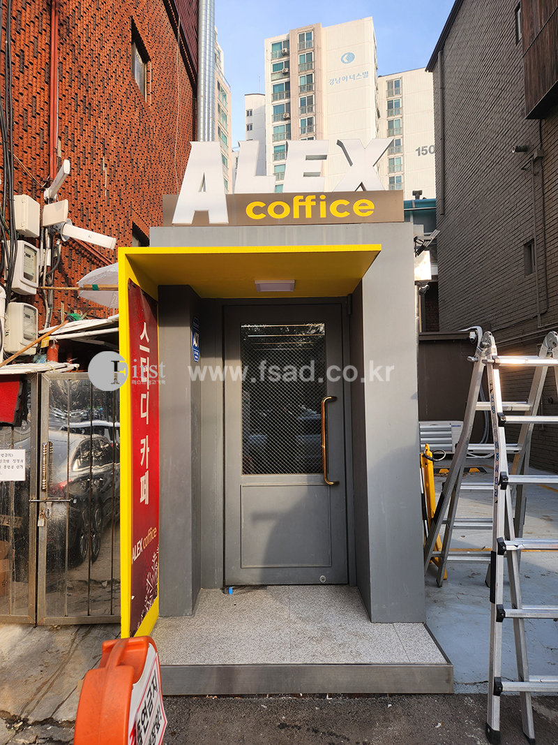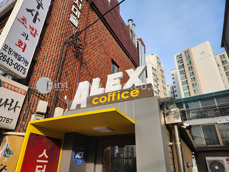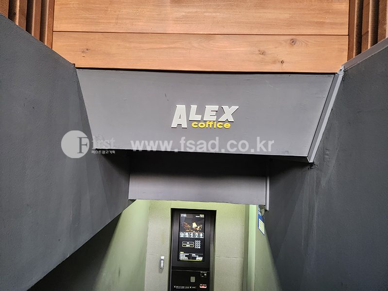 상단 ALEX 커피스 간판 사이즈로