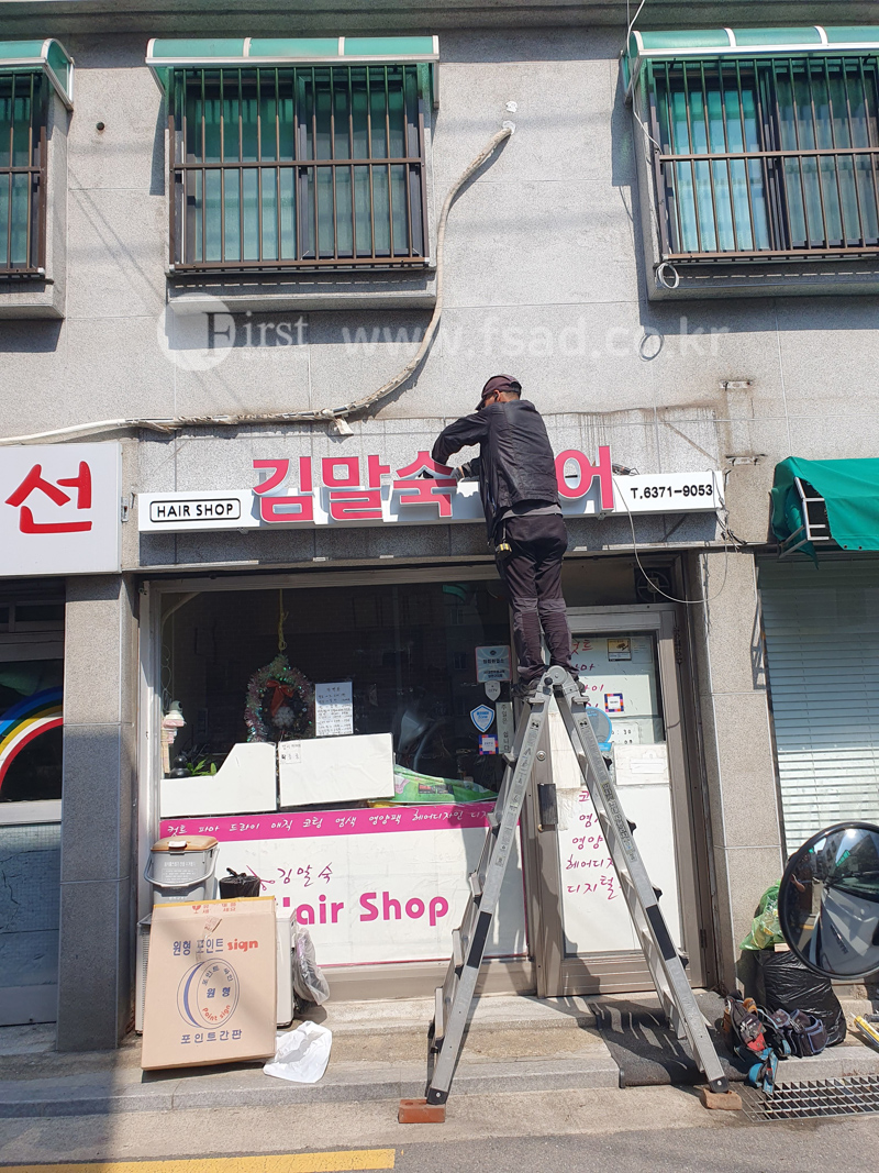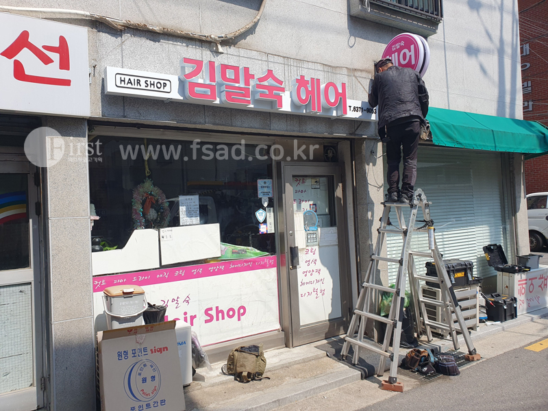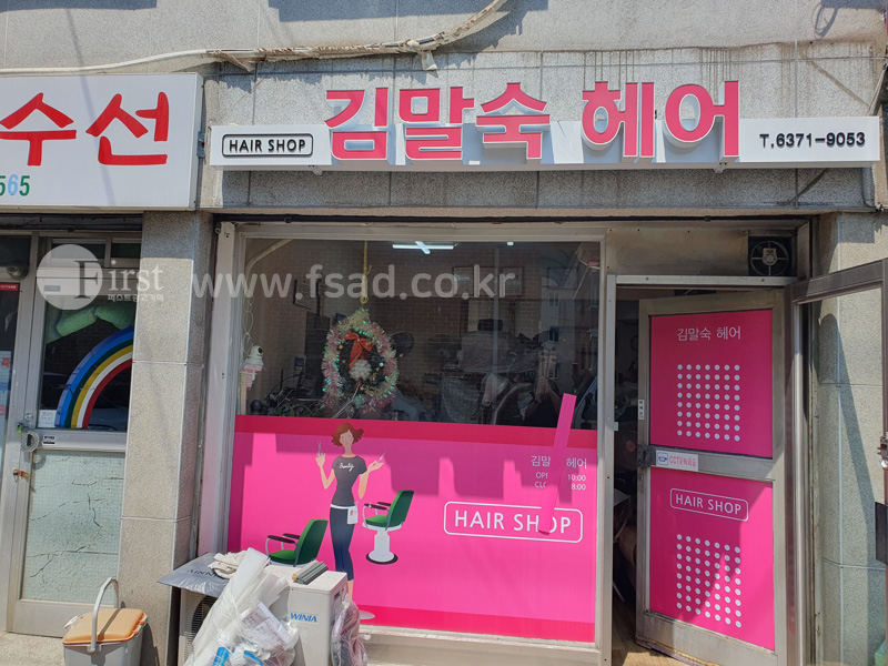 김말숙 헤어의 간판교체 시공 및 썬팅 작업인데요!