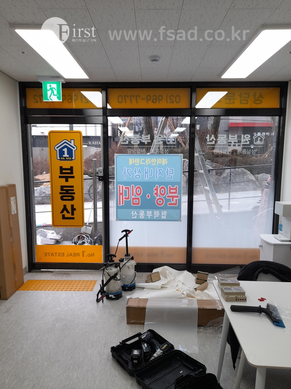 부동산 전후면 썬팅작업을 진행해주고